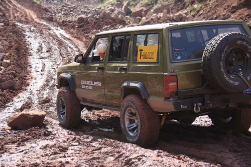 走上公路后轮胎也很快的把泥甩干净,场面很壮观! 极限通过性:三星 越野操控性:四星 第4天 西安-延安
